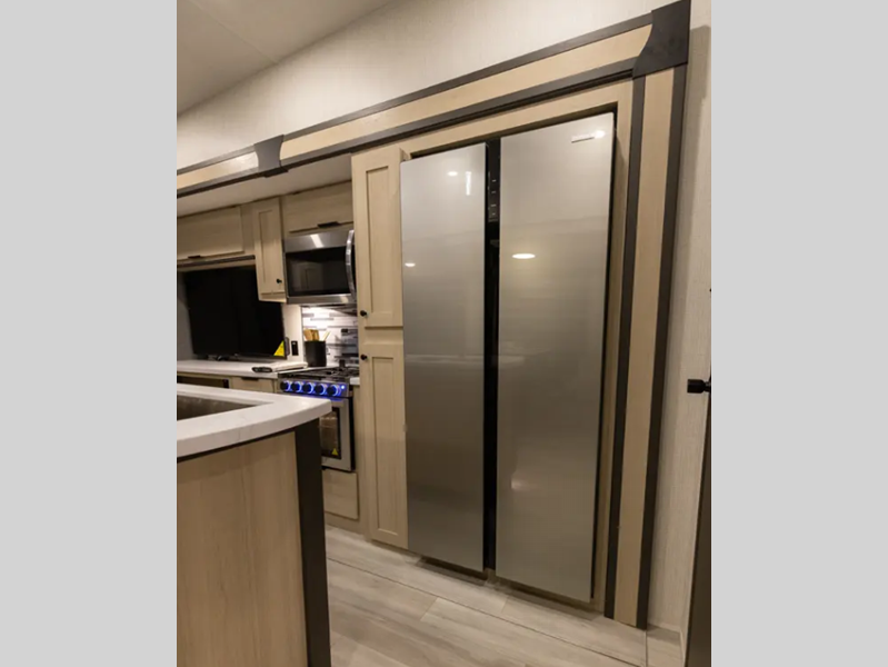 Sleeps 4 Slides 3 Length 36 ft 5 in Ext Width 8 ft Ext Height 13 ft 3 in Hitch Weight 1935 lbs GVWR 13500 lbs Dry Weight 10363 lbs Cargo Capacity 3137 lbs Fresh Water Capacity 60 gals Grey Water Capacity 38 gals Black Water Capacity 38 gals Furnace BTU 35000 btu Available Beds King Refrigerator Type 12V Refrigerator Size 16 cu ft Number of Awnings 2 LP Tank Capacity 20 lbs Water Heater Type On Demand Tankless TV Info LR 50" TV Awning Info 15' & 11" Power, Power Axle Count 2 Washer/Dryer Available Yes Number of LP Tanks 2 Shower Type Standard Electrical Service 50 amp Similar Floorplans