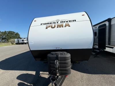 The Puma Camping Edition by Forest River offer an affordable travel trailer for rookie campers or seasoned RVers! They are built with 5/8" tongue and groove plywood flooring and a front diamond plate for added protection. There are also exterior magnetic baggage door latches, back up camera prep, a battery disconnect. Head inside to find Thermofoil countertops with a smooth drop edge, bedroom USB ports and outlets, and pleated shades in the living room.