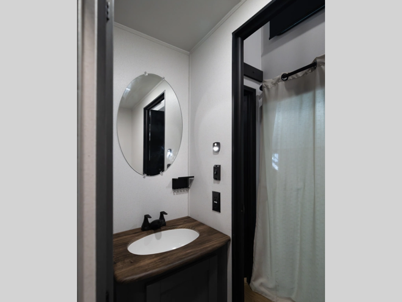 The Congoleum flooring inside is not only eye-catching, but also resilient and durable to withstand your adventurous lifestyle. There is a tankless water heater for added comfort, along with night roller shades, a residential-style refrigerator, and solid surface countertops.