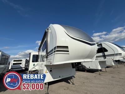 Sleeps 6 Slides 4 Length 40 ft 4 in Ext Width 8 ft 5 in Ext Height 13 ft 5 in Int Height 8 ft 5 in Hitch Weight 2728 lbs GVWR 16800 lbs Dry Weight 14798 lbs Fresh Water Capacity 81 gals Grey Water Capacity 106 gals Black Water Capacity 106 gals Tire Size ST215/75R17.5 LRH Furnace BTU 35000 btu Number Of Bunks 2 Available Beds Queen Refrigerator Type 12 Volt Refrigerator Size 16 cu ft Cooktop Burners 3 Shower Size 48" x 30" Number of Awnings 2 Axle Weight 7000 lbs LP Tank Capacity 30 Water Heater Type Tankless AC BTU 15000 btu TV Info LR 40" LED Smart TV, BR LED TV Awning Info 14' 5" & 10' 4"Power w/LED Lighting Axle Count 2 Washer/Dryer Available Yes Number of LP Tanks 2 Shower Type Standard Electrical Service 50 amp Solar Wattage 330 watts Similar Fifth Wheel Floorplans