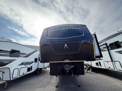 With any Reflection fifth wheel by Grand Design, you will have a solar panel for off-grid camping and a 60-amp charge controller and inverter prep, a Universal All-In-One docking station, unobstructed pass-through storage, and Goodyear Endurance tires. Each is constructed of gel coat exterior sidewalls, residential 5" truss rafters, walk-on roof decking, a fiberglass and radiant foil roof and front cap insulation plus laminated aluminum framed side walls, roof and end walls in slide rooms. Head inside to enjoy residential hardwood cabinet doors, premium Congoleum flooring, a spacious shower with a glass door, and many more comforts!
