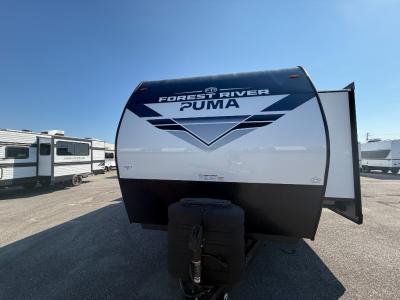 If you're looking for family-fun adventures then you need one of these Palomino Puma fifth wheels or travel trailers! They are built rugged, easy to tow, and jam packed with features. The Darco wrapped underbelly will protect your units vitals and the AlphaPly roofing membrane covers it. They also have new aluminum wheels and a powder coated steel I-beam frame. Inside, the Congoleum linoleum will be easy to keep clean, and the night roller shades will provide privacy when it's time to turn in. You'll also enjoy an electric awning with an LED light strip plus an AM/FM/Bluetooth stereo and two outside speakers to keep the party going!