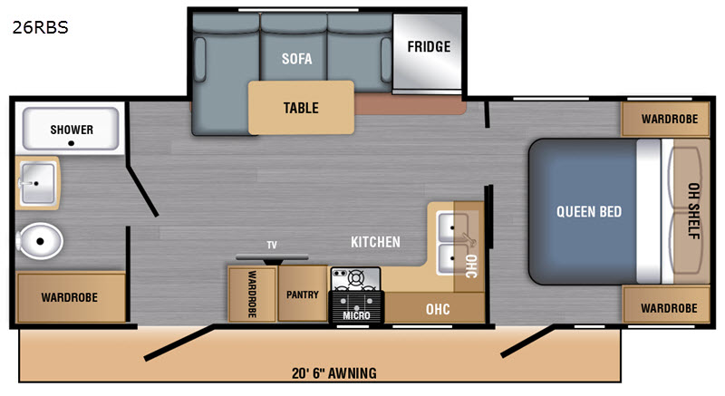 Some people take planes but why would you when you can have your own accommodations where ever you stop! You can make a full meal in the L-shaped kitchen, take a shower in the full bathroom with wardrobe storage, and sleep on your own queen bed. Your child or guest can sleep on the L-shaped sofa or even under the 20' awning if they brought their sleeping bag. This is the one!